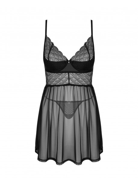 Nuisette et string noirs transparentsVous prévoyez un rendez-vous spécial ? Vous voulez créer une atmosphère romantique tout en ajoutant du piquant à votre chambre ? La nuisette de la collection Chemeris est un superbe choix !