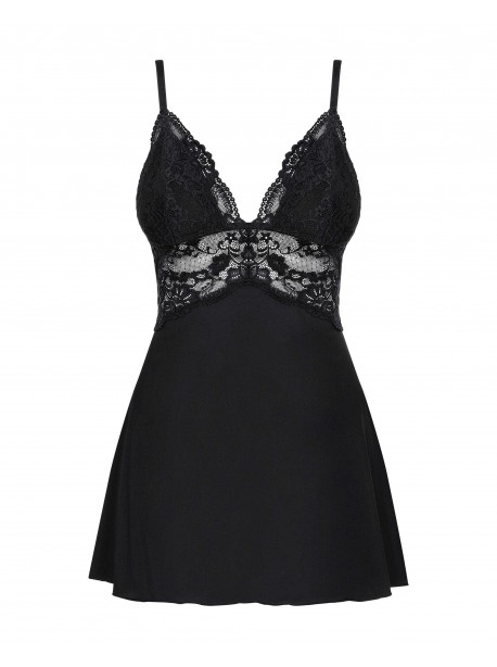Dans un tissu noir extensible et tellement doux, vous allez adorer cette nuisette babydoll noire. Avec une coupe évasée subtile, cette nuisette noire couvre juste ce qu’il faut les fesses. La poitrine est mise en valeur par un beau décolleté. Les bonnets sont recouverts d’une dentelle noire et rembourrés, Les bretelles sont réglables afin de s’ajuster à toutes les silhouettes. Une bande de dentelle transparente forme une ceinture sous le buste et dans le dos. Un string noir est inclus.